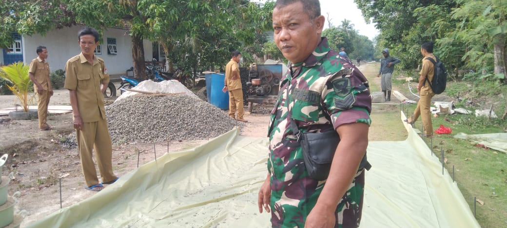 Babinsa Koramil 426-01 Simpang Pematang Melaksanakan kegiatan Monitoring Pembangunan Jalan beton