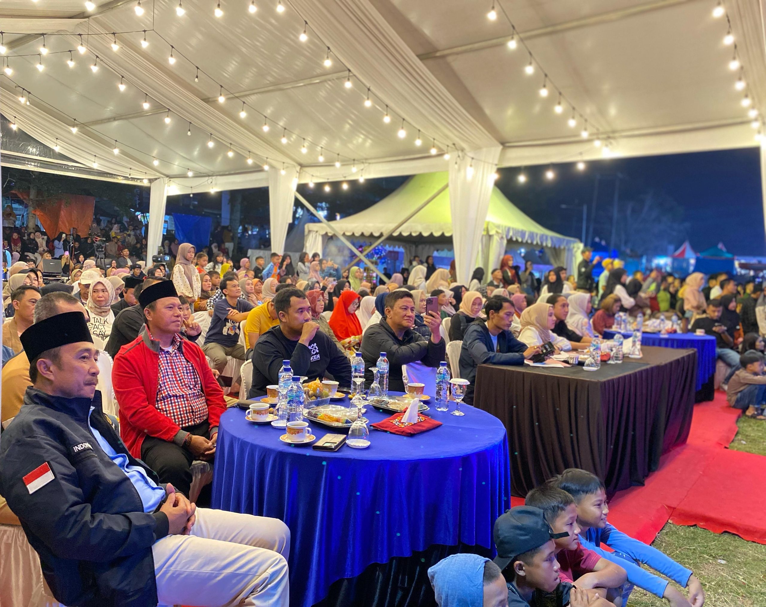 Pj Bupati Lampung Barat Drs. Nukman M.M tampak menikmati menyaksikan langsung lomba tari sekura dan orkes gambus tradisional yang turut menyemarakan rangkaian pada Festival Budaya Sekala Bekhak ke X di Lapangan Merdeka Kelurahan Pasar Liwa Kecamatan Balik Bukit, Minggu 21 Juli 2024 malam.